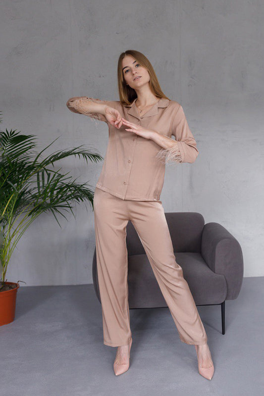 Улюблений домашній мусліновий костюм з довгим рукавом 143-23