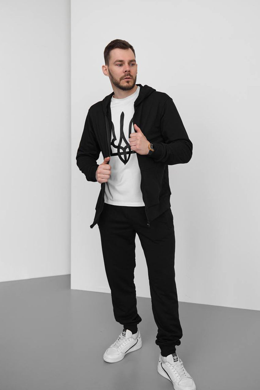 Підкресліть свій стиль та комфорт у чоловічому спортивному костюмі на замку 096-22. Цей костюм доступний у розмірах S, M, L, XL, XXL та в чотирьох захоплюючих кольорах: чорний, хакі, сірий та графіт. Зручний застібний замок додає практичності та функціональності, а використана трьохнитка петля гарантує високу якість та довговічність. Завдяки стильному дизайну та зручному крою, цей костюм стане ідеальним вибором для спортивних занять, активного відпочинку або повсякденних справ. Отримайте задоволення від комфорту та впевненості в собі з нашим спортивним костюмом на замку.