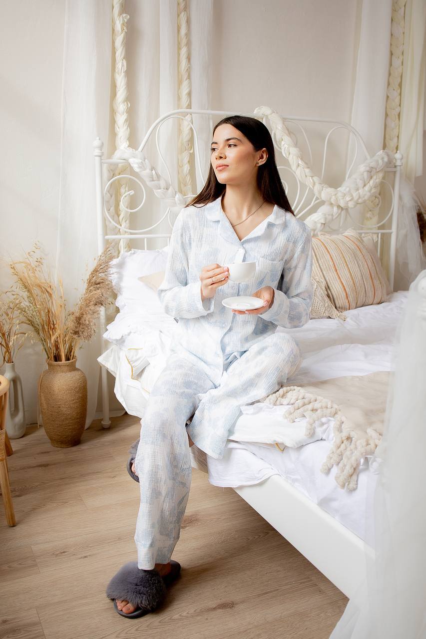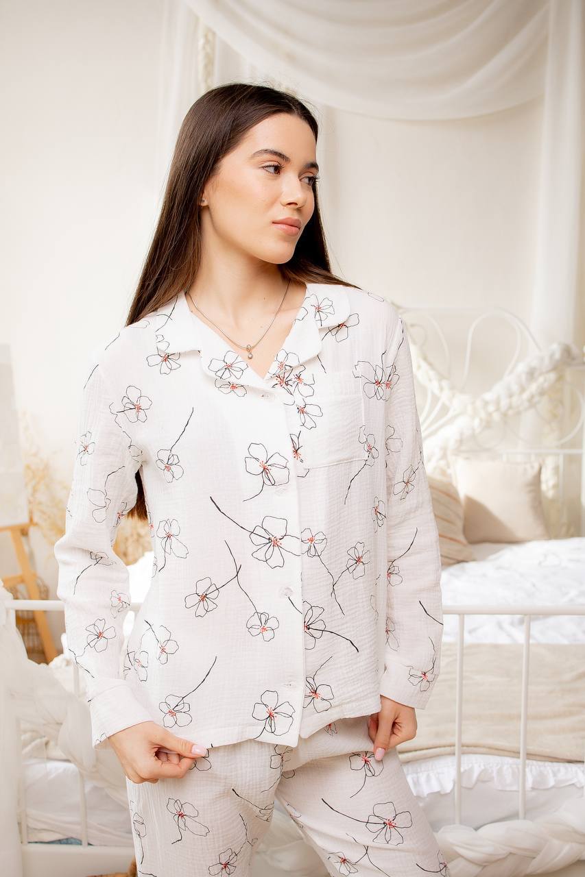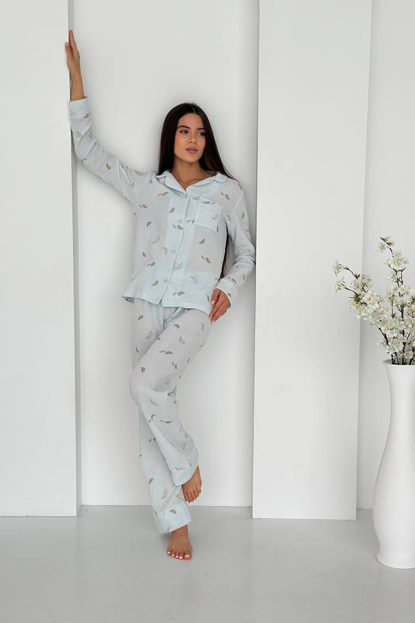 Улюблений домашній мусліновий костюм з довгим рукавом 143-23