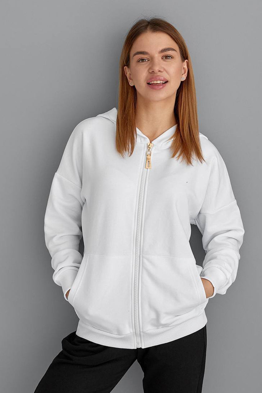 Стильне та класичне жіноче худі на замку 097-22 - ваш найкращий вибір для затишних та модних образів. Виготовлене з трьохнитки петля, це худі надає зручність та довговічність. Вам доступні кольори: білий і коричневий, а розміри S, M, L, XL, XXL гарантують ідеальну посадку на будь-яку фігуру. Застібний замок додає практичності і зручності під час носіння. Носіть це худі у будь-яку погоду та події - створіть чудовий образ з комфортом і стилем.