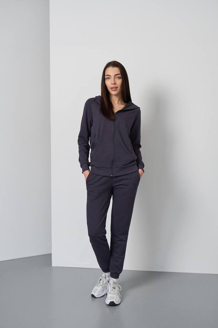 Підкресліть свою елегантність у нашому лаконічному трикотажному костюмі 113-23. Розміри XS до XXL, виготовлений з трьохнитки петля рібана, цей костюм поєднує зручність і стиль. Виберіть свій улюблений колір: капучіно, чорний, графіт, сірий, оливковий, та надайте своїм спортивним вихідним неперевершений шик. Ідеальний для різних активностей та відпочинку, даруючи вам поєднання комфорту і модного образу.