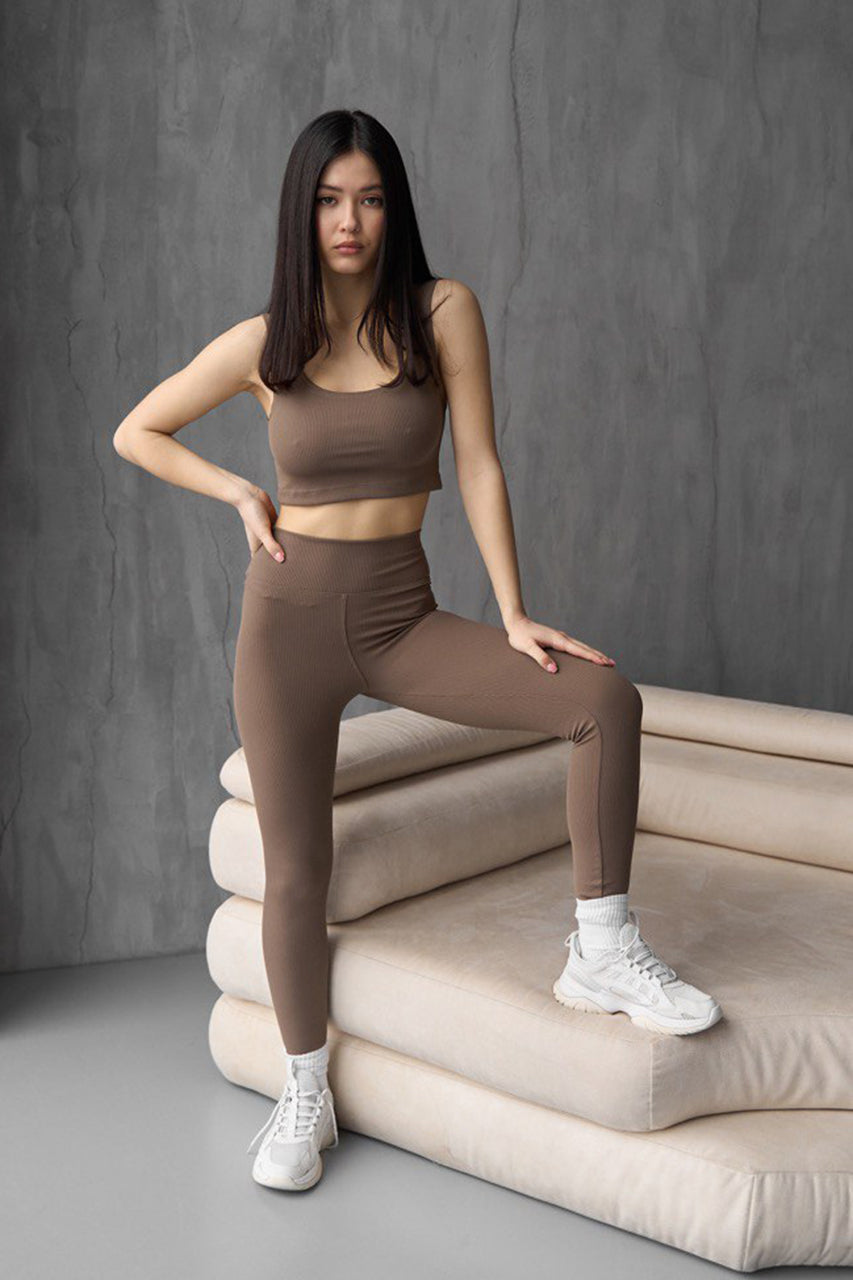 Додайте елегантності та комфорту у ваші спортивні тренування з нашими спортивними лосинами 107/23. Виберіть з п'яти стильних кольорів: капучіно, оливковий, смарагдовий, чорний та шоколадний. Зручні розміри XS-S та M-L забезпечать ідеальну посадку для різних фігур. Тканина з рубчику дарує м'якість на дотик і допомагає відведенню вологи під час інтенсивних тренувань. Запрошуємо вас зануритися в світ спорту з нашими чудовими спортивними лосинами.