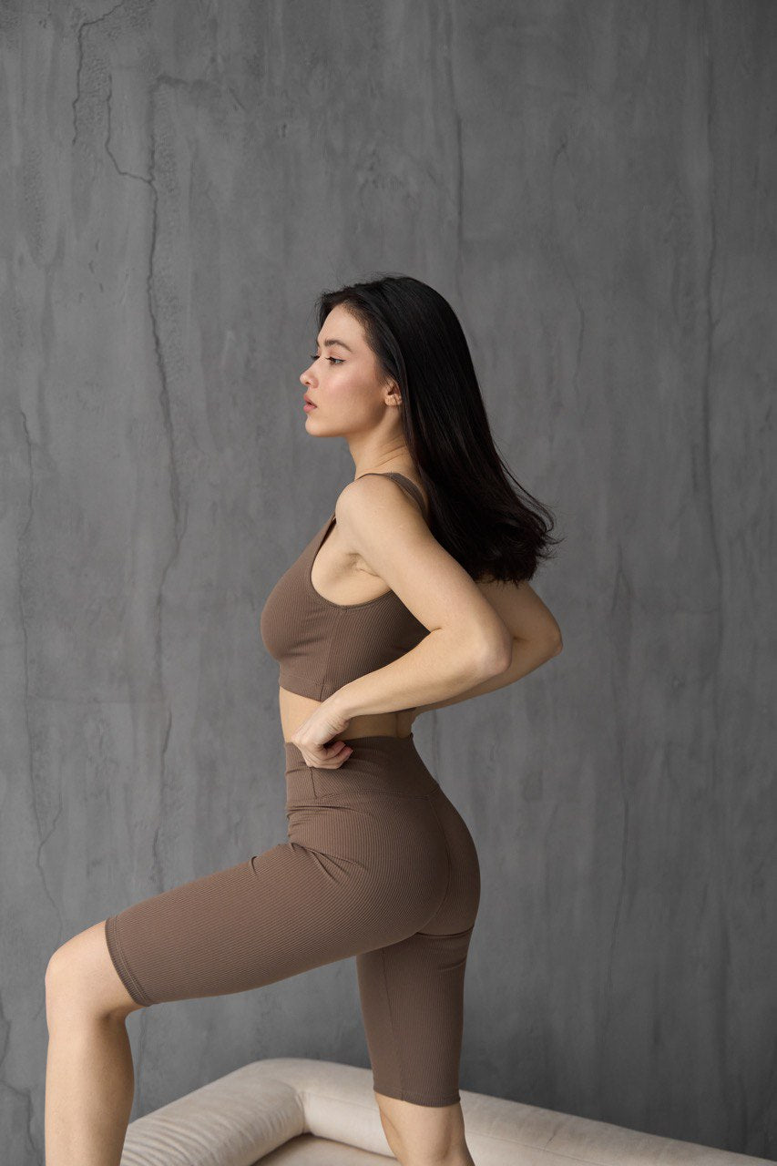 Забезпечте собі комфорт та стиль на тренуваннях зі спортивними велосипедками 108-23. Виберіть з кольорів: капучіно, оливковий, смарагдовий, чорний та шоколадний. Розміри XS-S та M-L. Виготовлені з м'якого рубчику для приємного до тіла і оптимальної підтримки. Ідеальний вибір для фітнесу та йоги!