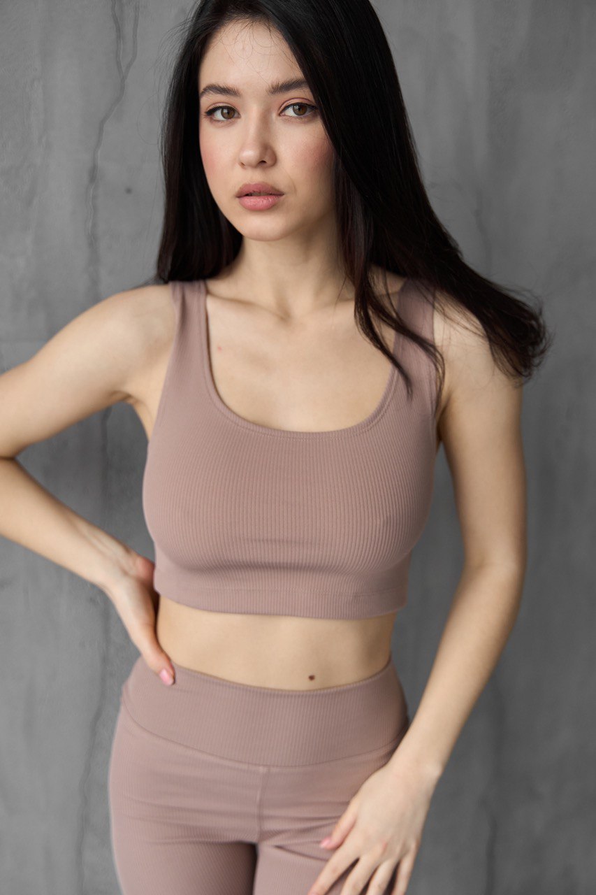 Спортивний топ для фітнесу та йоги - ідеальний вибір. Прекрасно сидить на фігурі, забезпечуючи комфорт та підтримку. Колірні варіанти: смарагдовий, капучіно, оливковий, шоколадний, чорний. Виготовлений з рубчика. Розміри: XS-S, M-L. Чудовий спортивний аксесуар для активного та стильного життя!