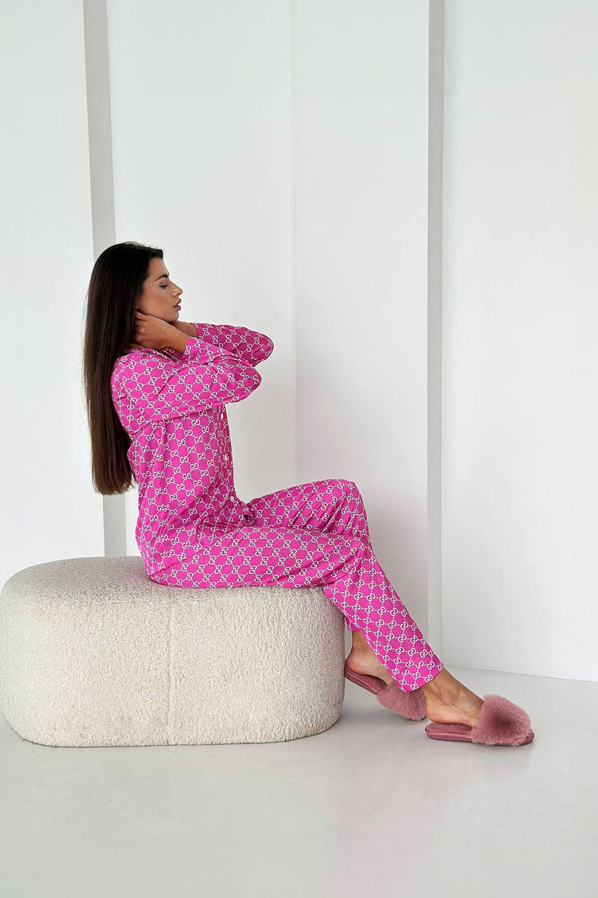 Костюм має вільну подовжену сорочку на ґудзиках та накладною кишенею на грудях. Штани прямого крою високої посадки на тонкій резинці на поясі, яка добре тримає, але й не перетискає 👌